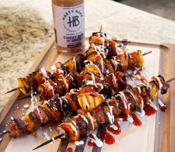 Let me tell you, if there was a smell-o-vision option on the screen, I would turn it on for you folks. The sweet aroma of cider and cinnamon mixed sage and thyme left me begging for the holidays to be here in a hurry! We originally developed this recipe because Hasty-Bake has an AWESOME baster-pan that is manufactured to fit in place of one of your grill grates perfectly and we wanted to show it off. By using the baster pan, I can now free up my oven during the holidays to use for other goodies, or I can use it in place of my oven all-together. In just a matter of about 4 hours, I had a full meal ready to go that was so beautiful, we ALMOST didn’t want to eat it… key word there… almost HA!